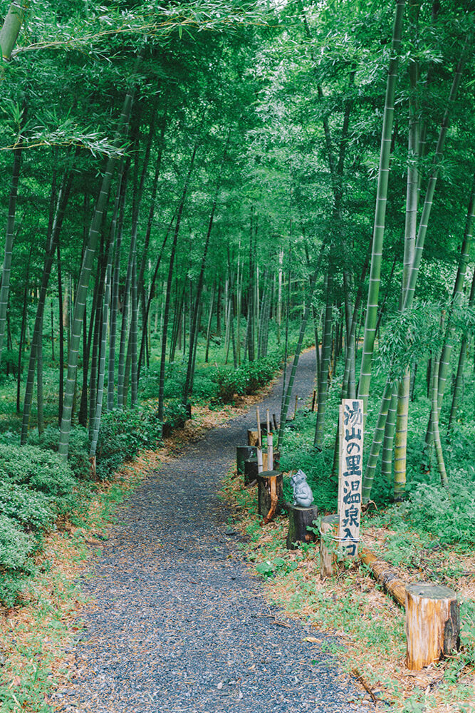 いざ、温泉へ!わくわく、竹の中へ。連れてきた皆んな、思わず息を呑む素敵な竹林。とても丁寧に整備されているこの道。6月は紫陽花で彩られます。