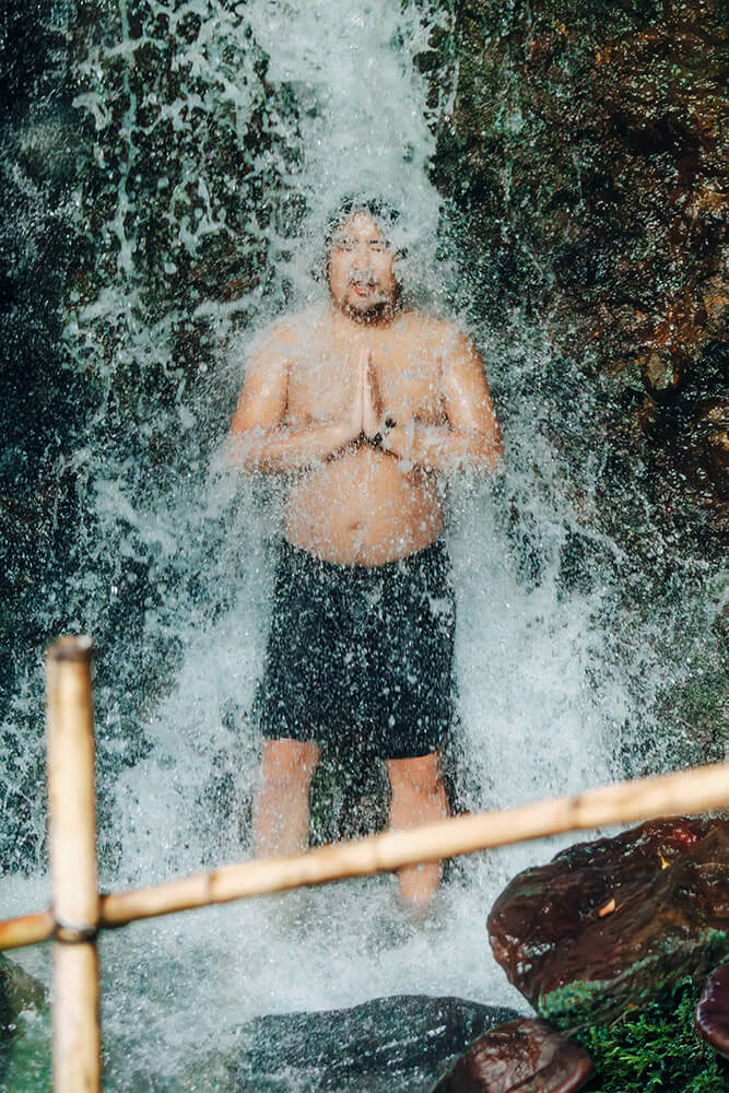 滝行するInstant SaunaスタッフのGotoYusukeさん