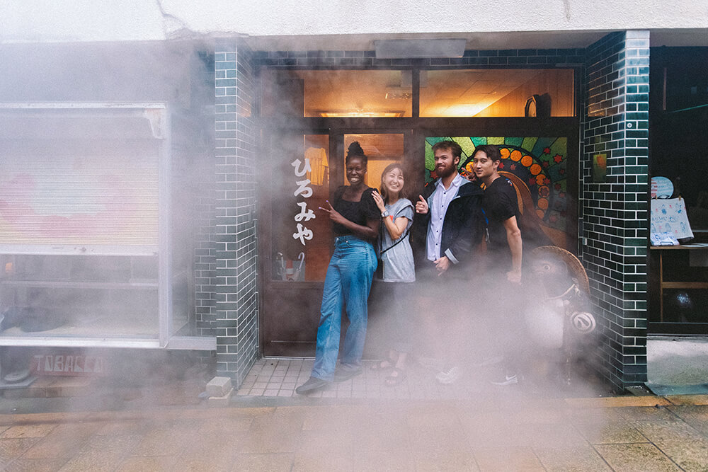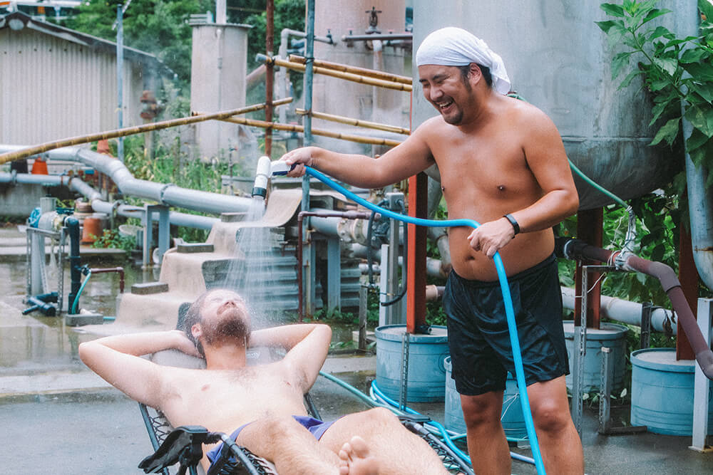 timo:例えば、今回ドリアンというゲスト(観光客)がいました。撮影にも参加してくれたんですが、彼と会ったのも撮影の前日だったんです。ラビなんてその日たまたま湯山の里に温泉に入りに来ていた観光客ですしね(笑)ラビとドリアンが同じフランス人だということもあって、二人が仲良くなったり。別府にいると本当に「旅」をしている人も、そうじゃない人も一緒に冒険に出かけることが出来るんです。
